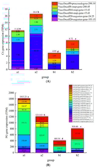 3.8. Effects of Different Treatments on the Expression of Polysaccharide-Degrading Enzyme-related Genes in the Blueberry Cell Wall