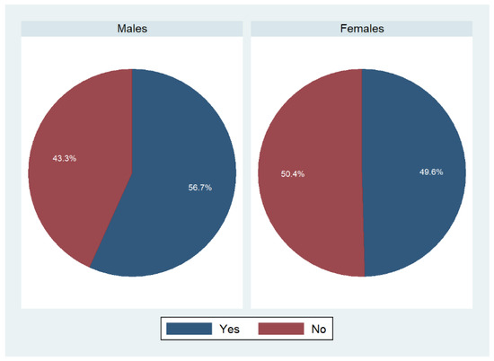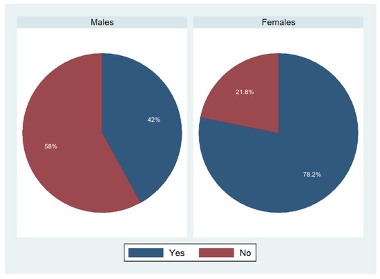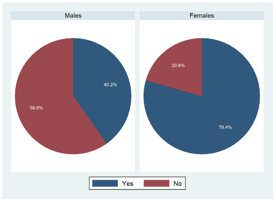 In addition to that, we investigated whether participants shared the shopping for food with someone else (Figure 4). Almost 62% of males replied “yes” to that question, whereas only 50.3% of females did so.