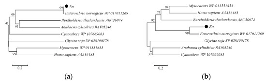 (a) Phylogenetic tree of amino acid sequences of EnLOX. (b) Phylogenetic tree of nucleotide sequences of EnLOX.