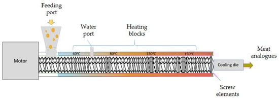 Illustration of high-moisture extrusion (HME) with twin-screw extruder adapted from Zahari et al. [14].