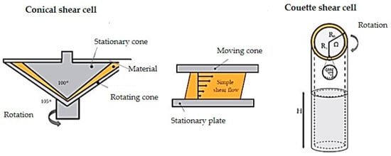 Illustration of conical shear and Couette shear cell adapted from Dekkers [16].