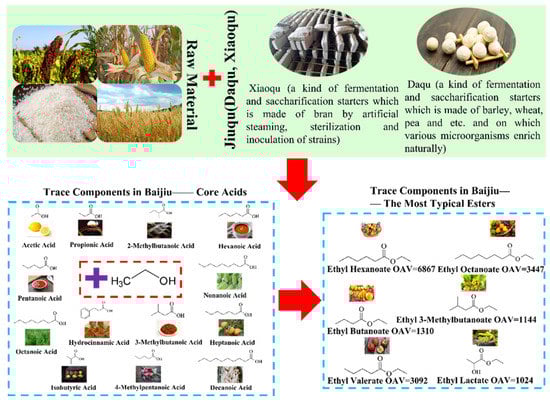 - Hong, J.; Zhao, D.; Sun, B. Research Progress on the Profile of Trace Components in Baijiu. Food Rev. Int. 2021, 1–27. [Google Scholar] [CrossRef]