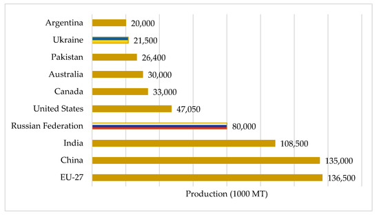 Estimated wheat production in 2022. Source: [25].