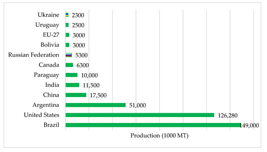 Estimated soybean production in 2022. Source: [25].