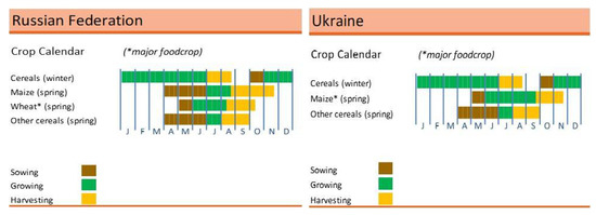 Russian and Ukrainian crop calendars. Source: [27]. * wheat, soybean, maize, and barley.