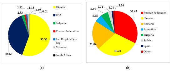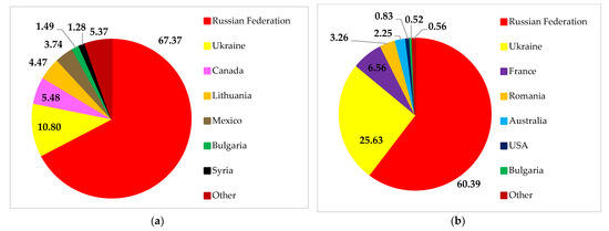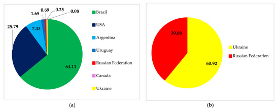 Destinations for Russian (a) and Ukrainian (b) soybean exports. Source: [30].