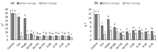 Kayacan et al. [37] reported in persimmons under hot air, more drying time can result in accelerated pigment deterioration and non-enzymatic browning. Additionally, drying time is shortened in the microwave treatments, and this is followed by the degradation of pigments from interaction of hot air and power. The microwave reduced amount of discoloration of the coriander fruit samples during the drying process [38]. In another study, Łechtańska et al. [39] on the drying of green pepper using different desiccants (hot air, microwave- hot air, microwave- hot air -infrared). The least color change was related to the microwave- hot air, due to less drying time.