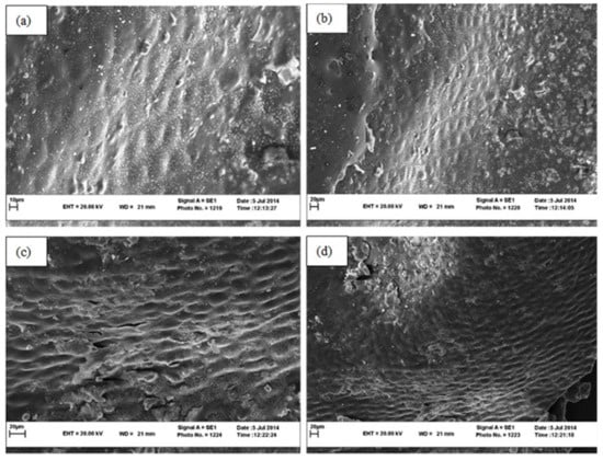 According to the SEM images taken from the dried seedless barberry samples by different microwave powers (Figure 6), it is inferred that increasing the microwave power reduces the shrinkage of the seedless barberry fruit surface (Figure 6c). Due to the reduction of drying time at high power. According to the SEM imaging, (Figure 7) the highest reduction of seedless barberry fruits’ epiderm diameter was observed under Oven drying, especially under 70 °C (Figure 7c).