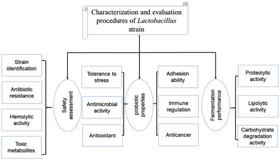 Characterization and evaluation procedures of Lactobacilli strains.