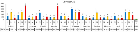 | Qazvin | 6.6 ± 0.63 e | 16.95 ± 2.88 mno | 1.44 ± 0.09 nop | |