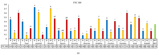| Yazd | 10.629 ± 0.7 n | 12.205 ± 0.4 r | 27.637 ± 0.6 c | 16.822 ± 0.7 mn | 14.948 ± 0.6 k | 21.178 ± 0.7 m | 3.289 ± 0.2 fg | 8.418 ± 0.3 jklm | |