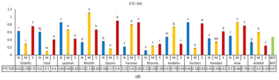 | Farsfars | 7.6 ± 0.07 d | 48.09 ± 0.99 f | 2.1 ± 0.15 jk | |