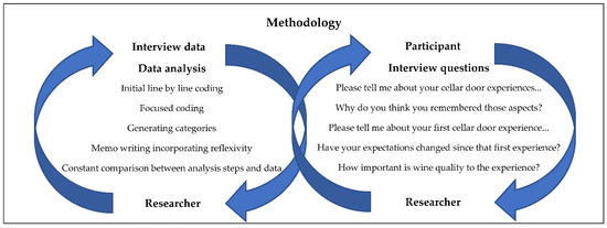 Thirty-three in-depth interviews were conducted in seven different wine regions on the east coast of Australia. The interview duration ranged from 58 min to 97 min. Interviews were audio-recorded with the consent of the participants, who all participated voluntarily and were over the age of 18 (the legal age for consuming alcohol in Australia). A snowballing referral sampling technique was chosen in order to access hard-to-reach and relevant participants, using natural social network processes to help explore unique perspectives [37,38]. Table A1 contains details of the sample. As interviews were conducted during the period from October 2020 to July 2021, coinciding with restrictions due to the COVID-19 pandemic in Australia, this, we acknowledge, may have affected the participants’ recollections and attitudes toward CDEs.