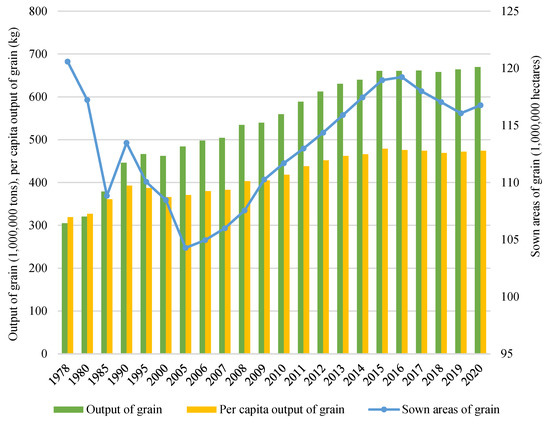 China’s output of grain in 1978–2020. Data source: China Statistical Yearbook.