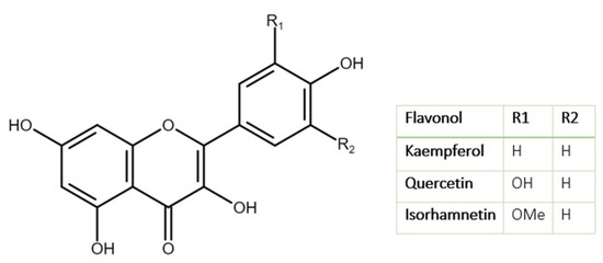 Chemical structure of the main flavonols found in L. nobilis L. leaves (adapted from Li et al. [29]).