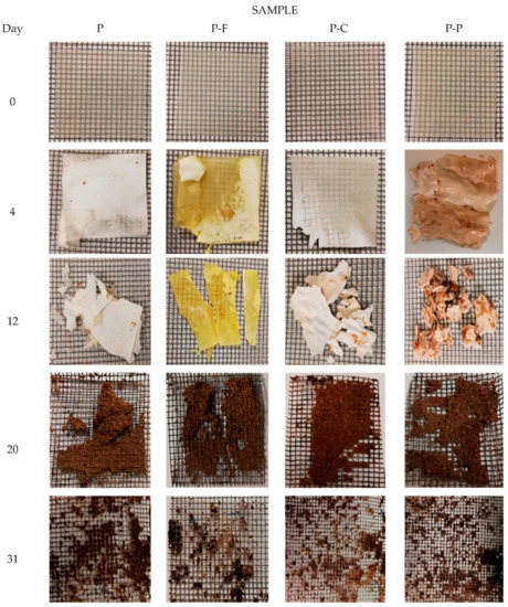 - ISO 20200, ISO 20200, Plastics-Determination of the Degree of Disintegration pf Plastic Materials under Simulated Composting in a Laboratory -Scale Test. 2004. Available online: https://www.une.org (accessed on 1 December 2020).