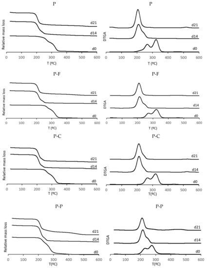 - Arrieta, M. Films de PLA y PLA-PHB Plastificados Para su Aplicación en Envases de Alimentos. Caracterización y Análisis de Los Procesos de Degradación. Ph.D. Thesis, Universidad Politécnica de Valencia, Valencia, Spain, 2014; pp. 239–242. Available online: http://hdl.handle.net/10251/39338 (accessed on 1 December 2020).