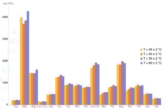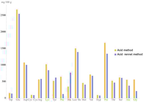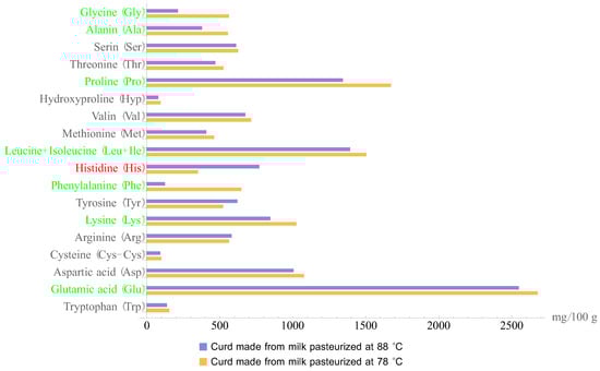The same trend was observed when examining the amino acid composition of the curd made from milk pasteurized under the specified conditions (Figure 2).