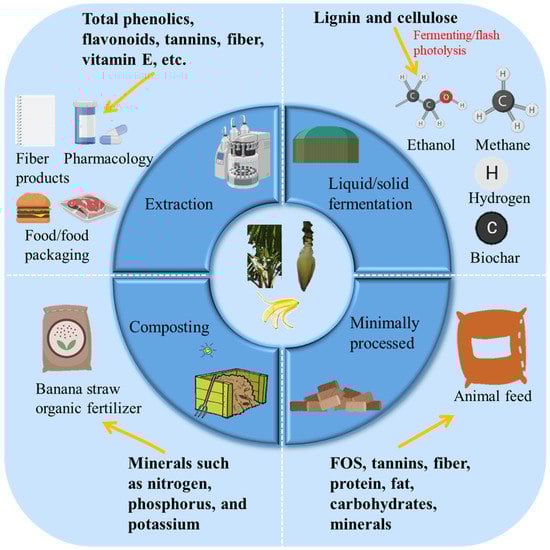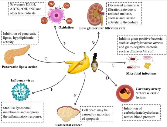 - Pereira, A.; Maraschin, M. Banana (Musa spp.) from peel to pulp: Ethnopharmacology, source of bioactive compounds and its relevance for human health. J. Ethnopharmacol. 2015, 160, 149–163. [Google Scholar] [CrossRef]