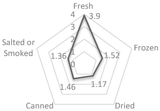 - Myrland, O.; Trondsen, T.; Johnston, R.S.; Lund, E. Determinants of Seafood Consumption in Norway: Lifestyle, Revealed Preferences, and Barriers to Consumption. Food Qual. Prefer. 2000, 11, 169–188. [Google Scholar] [CrossRef]
