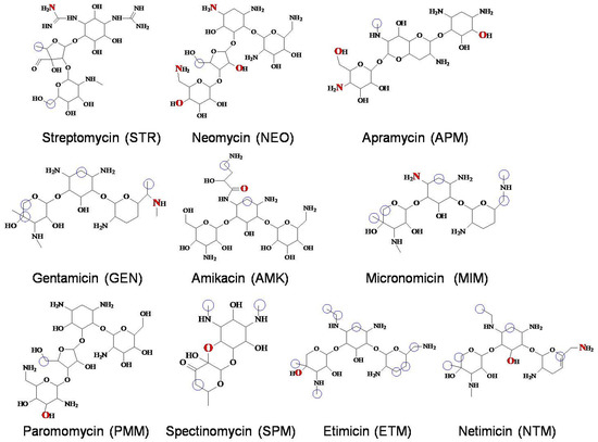 - Magnet, S.; Blanchard, J.S. Molecular insights into aminoglycoside action and resistance. Chem. Rev. 2005, 105, 477–497. [Google Scholar] [CrossRef]