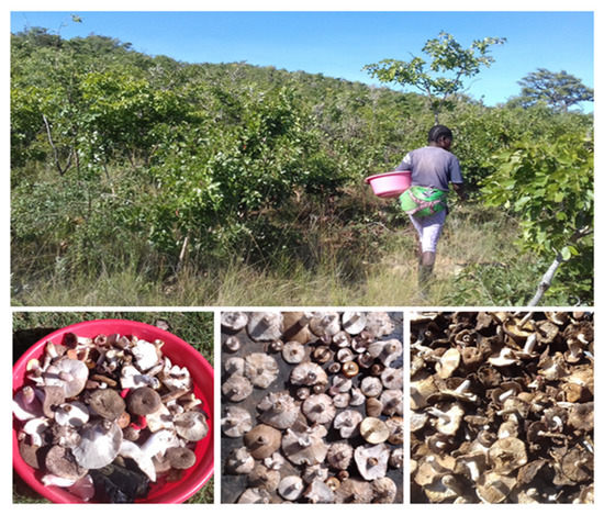 - Mlambo, A.; Maphosa, M. Miombo Woodland Mushrooms of Commercial Food Value: A Survey of Central Districts of Zimbabwe. J. Food Secur. 2017, 5, 51–57. [Google Scholar] [CrossRef]