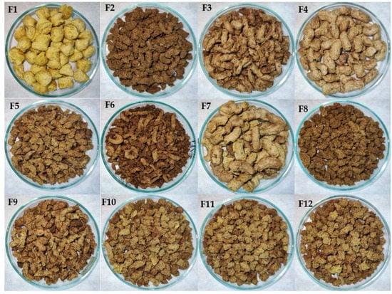 - Dust, J.M.; Gajda, A.M.; Flickinger, E.A.; Burkhalter, T.M.; Merchen, N.R.; Fahey, G.C. Extrusion Conditions Affect Chemical Composition and in Vitro Digestion of Select Food Ingredients. J. Agric. Food Chem. 2004, 52, 2989–2996. [Google Scholar] [CrossRef] [PubMed]