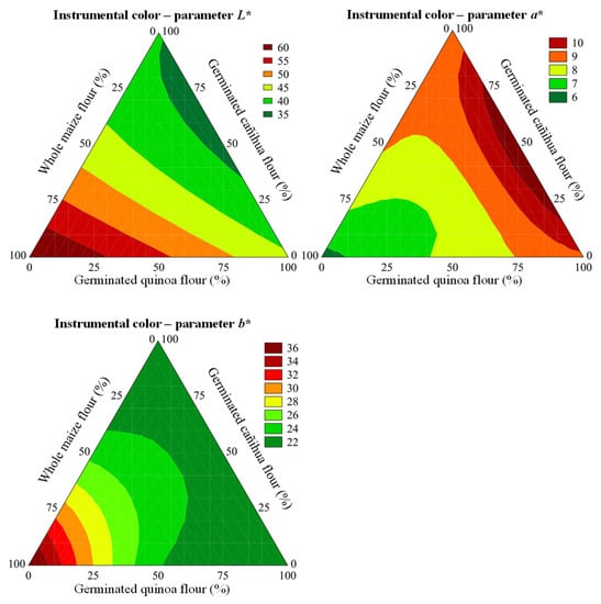 3.4. Optimal Formulation Improved the Nutritional Quality, Texture and Color of Corn-Sprouted Pseudocereal Flour Extrudates