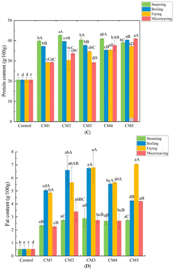 | CM1 | Steaming 20 min, Boiling 20 min, Frying 3 min, Microwaving 3 min |