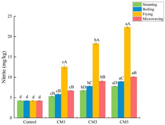 3.4.1. Effect of Different Thermal Processing on Nitrite Levels in Camel Meat