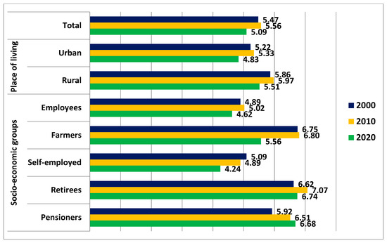 - Świstak, E.; Laskowski, W. Zmiany wzorca konsumpcji żywności na wsi i ich uwarunkowania [Food consumption changes in rural areas and their determinants]. Zesz. Nauk. Szkoły Głównej Gospod. Wiej. Ekon. I Organ. Gospod. Żywnościowej 2016, 114, 5–17. (In Polish) [Google Scholar] [CrossRef]
