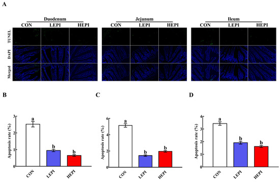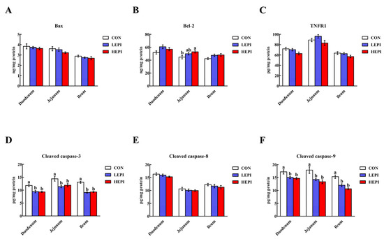 3.7. Intestinal Cell Apoptosis-Related Proteins