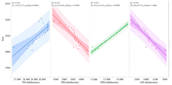 3.2. TPA and MPA Are Increasing, But EPA and LPA Are Decreasing