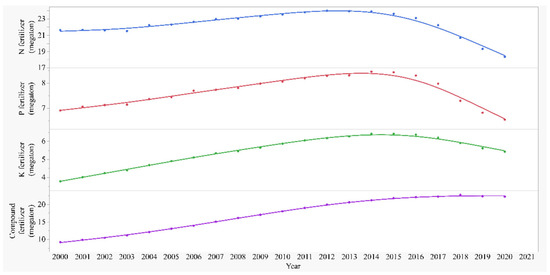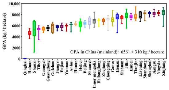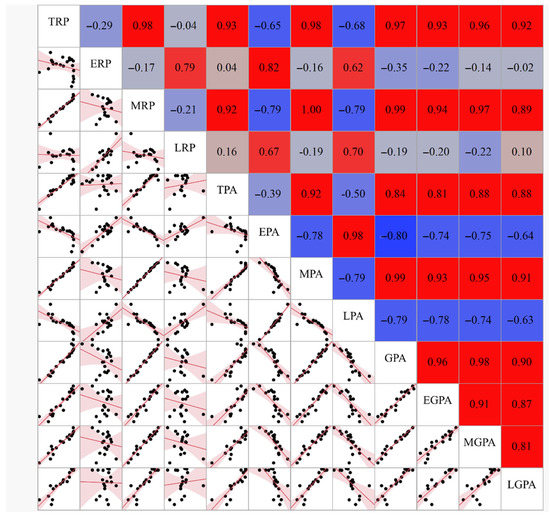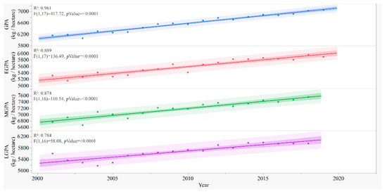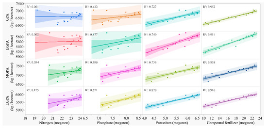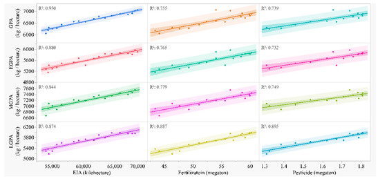 3.5. Correlations of the GPA in Rice with the Consumption of Agricultural Resources