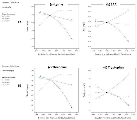| Treatments | Lysine | SAA | Threonine | Tryptophan | Lysine | SAA | Threonine | Tryptophan |