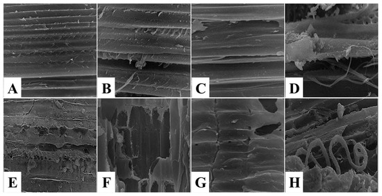 - Rumondor, D.; Tamasoleng, M.; Manangkot, H.; Hadju, R.; Ma’ruf, W. The effect of the storage to the microstructure of angkak sausages of laying chicken meat with the scanning electron microscope (SEM) method. Sci. Pap. Ser. D Anim. Sci. Int. Sess. Sci. Commun. Fac. Anim. Sci. 2021, 64, 380–384. [Google Scholar]