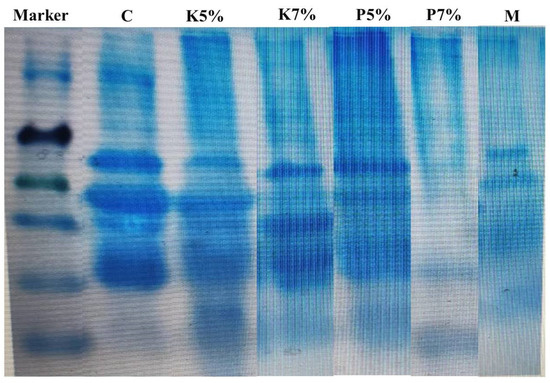 3.3. The Effect of Kiwi and Pineapple Extracts on the Electrophoretic Pattern of Spent Hen Meat Patties