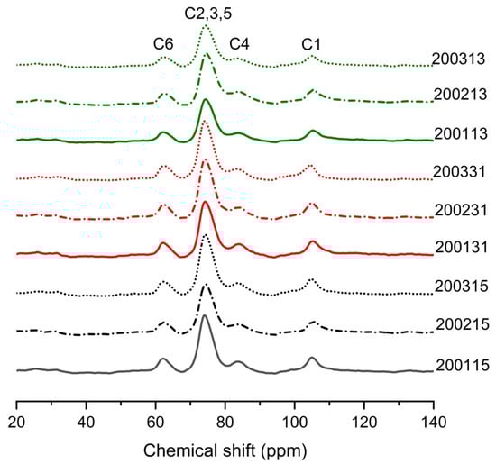 - Therien-Aubin, H.; Janvier, F.; Baille, W.E.; Zhu, X.; Marchessault, R.H. Study of hydration of cross-linked high amylose starch by solid state 13C NMR spectroscopy. Carbohydr. Res. 2007, 342, 1525–1529. [Google Scholar] [CrossRef] [PubMed]