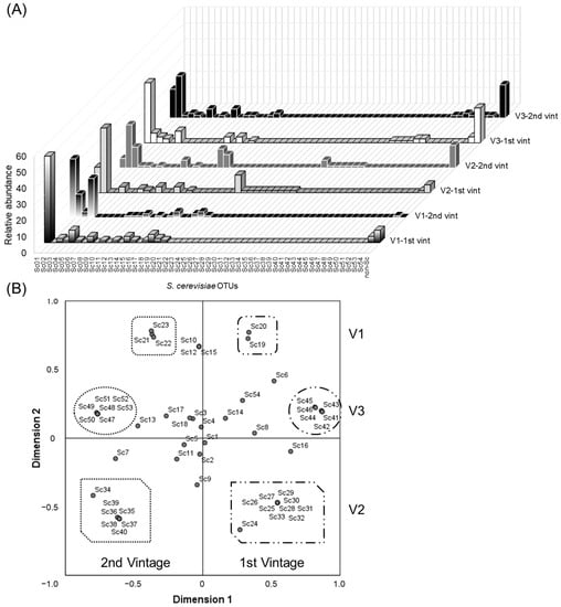 Taken together, these results highlight the effect of vineyard and vintage on yeast communities, as well as the presence of singular strains in each vineyard and vintage.
