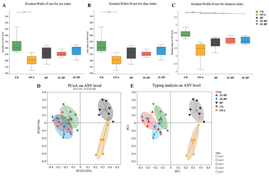 Tao, Y.; Zhou, E.; Li, F.; Meng, L.; Li, Q.; Wu, L. Allergenicity Alleviation of Bee Pollen by Enzymatic Hydrolysis: Regulation in Mice Allergic Mediators, Metabolism, and Gut Microbiota. Foods 2022, 11, 3454. https://doi.org/10.3390/foods11213454