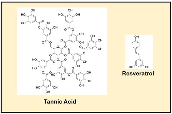 Structures of tannic acid and resveratrol.