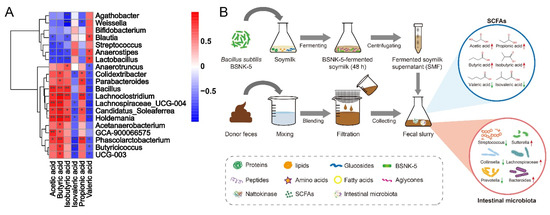 Highly nutrient-dense and plant-based foods, such as fermented soymilk, have been developed, to enhance intestinal health by regulating and restoring the homeostasis of the gut microbiota [7]. This study explored the effect of B. subtilis BSNK-5-fermented soymilk on gut microbiota by in vitro fecal fermentation. The results showed the BSNK-5-fermented soymilk increased the content of SCFAs and the modulation of gut microbiota.