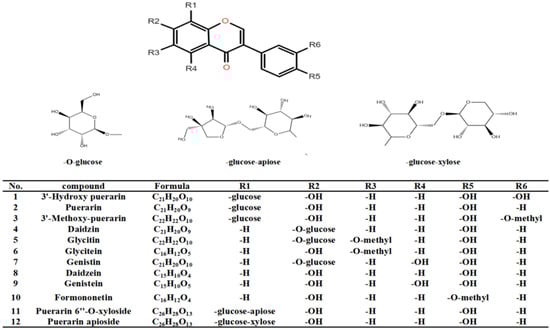 Chemical structures of the 12 isoflavone compounds.