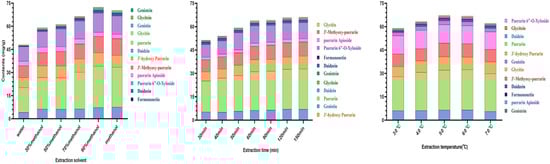 Effect of extraction solvent, temperature, and time on the concentration of isoflavones in pueraria extracts.