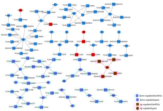 Expression regulation network constructed by differentially expressed mRNA-lnRNA.