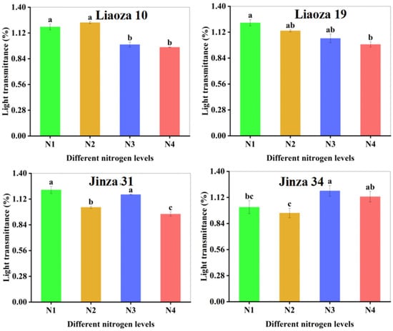 Effects of different nitrogen fertilizer level on the transparency of sorghum starch. Note: values with letters in the figure mean a significant difference (p < 0.05).
