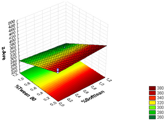 Surface response chart of the effect of the % of Tween® 80 and SOFTISAN® 649 on z-Ave.
