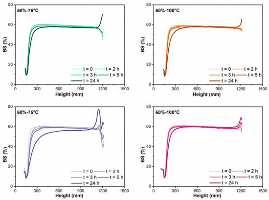 where BSi[h] is the BS (%) at time i for position h, BS0[h] is the BS (%) at time 0 for position h, and H is the total sample height.