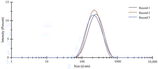 Particle size of OEO-CSNPs. Records 1−3 represent the first few repetitions of the experiment.