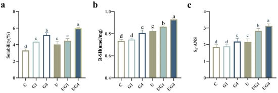 | UG4 | 0.944 ± 0.002 d | 0.243 ± 0.006 d | 14.637 ± 0.389 c | 5575.223 ± 415.194 e | 1736.976 ± 445.675 c | 0.547 ± 0.056 b |